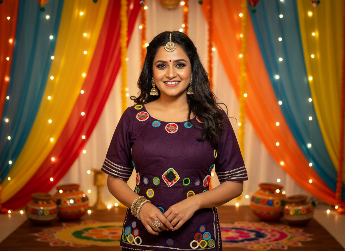 Festive Men's Kurta with Colorful Gujarati Embroidery