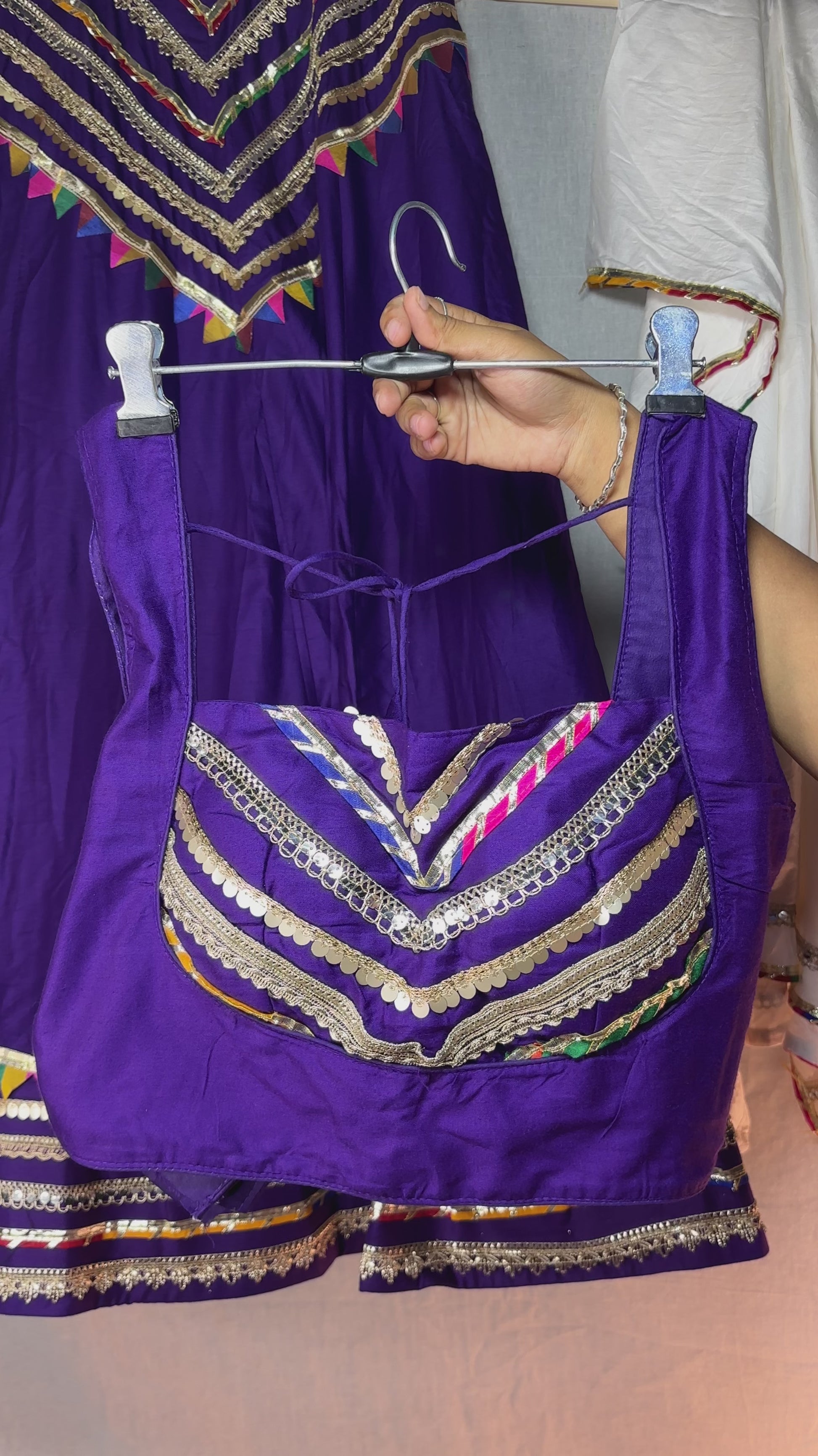 Royal Purple Navratri Lehenga Choli with White Dupatta & Festive Embellishments